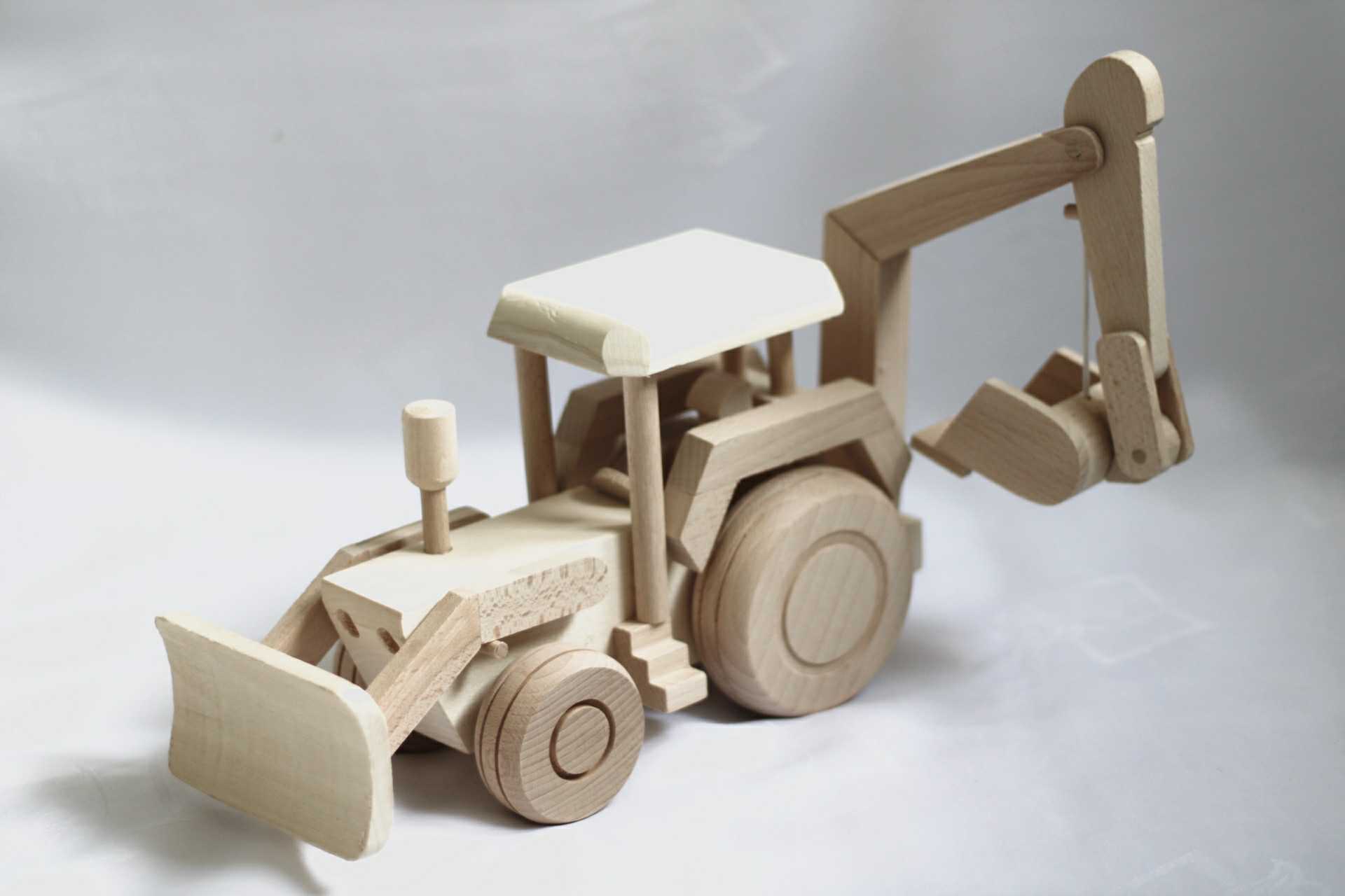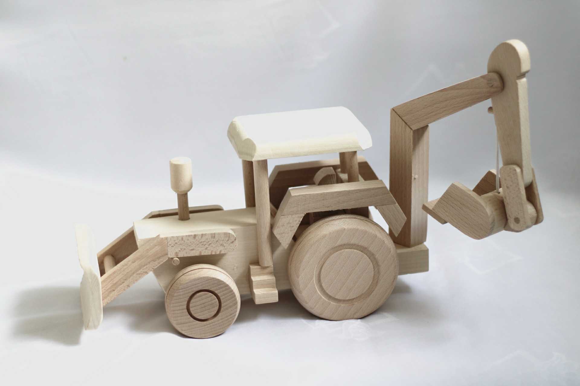 Drevený báger v prírodnej farbe dreva má otáčacie kolesá, zhŕňacia radlica sa pohybuje smerom hore-dolu. Lyžica je otáčacia, pohybujúca sa a odňímateľná. Vyrobený je z bukového dreva, bez farby a laku, čiže je pre detičky nezávadný. Rozmer: 40cm x 13cm x 26cm