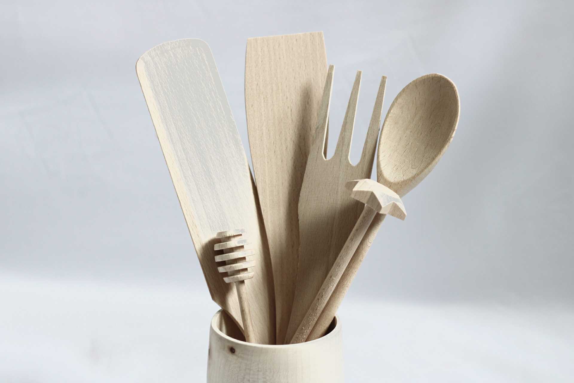 Drevená kuchynská sada, je vhodná na každodenné používanie.