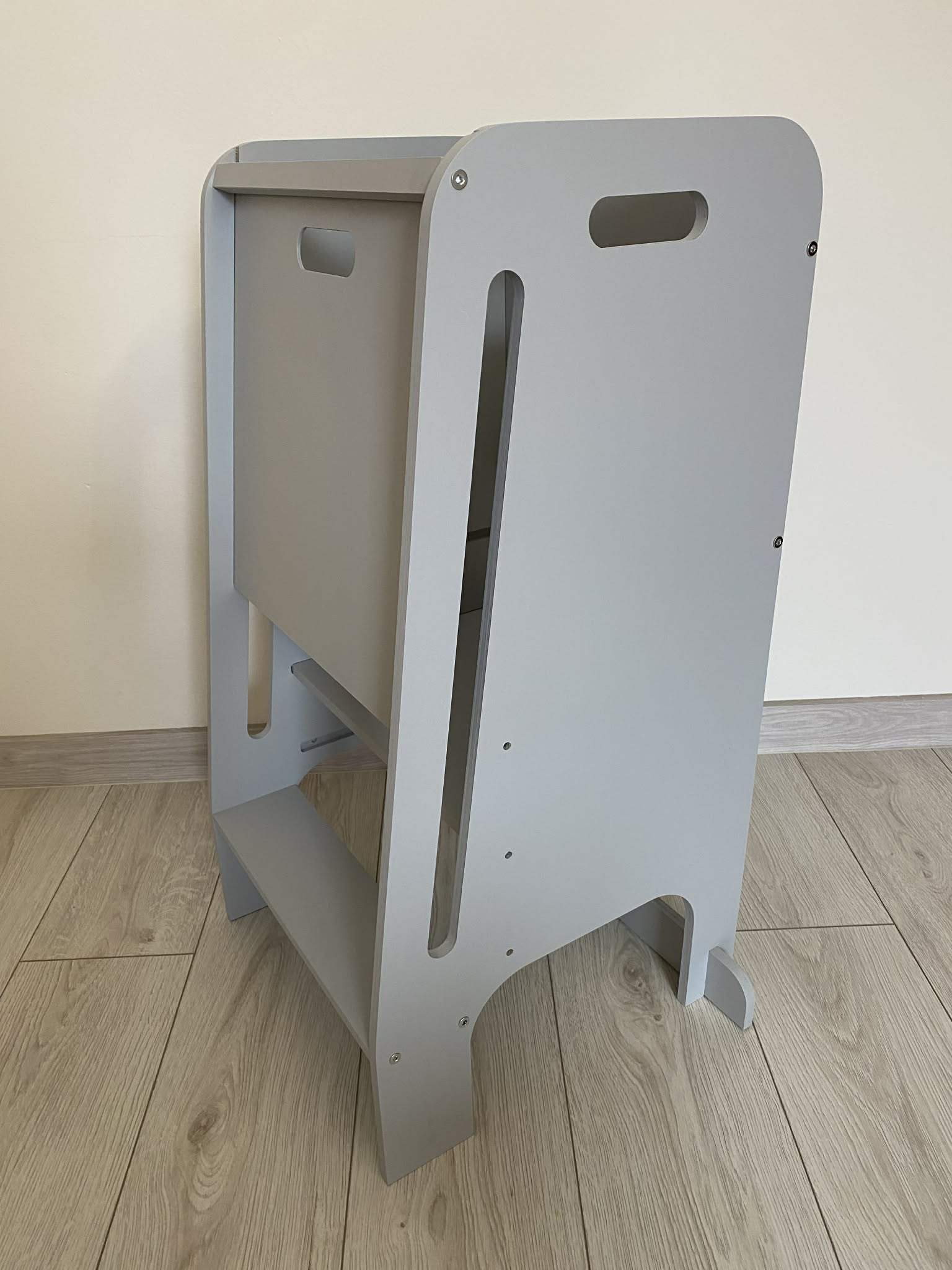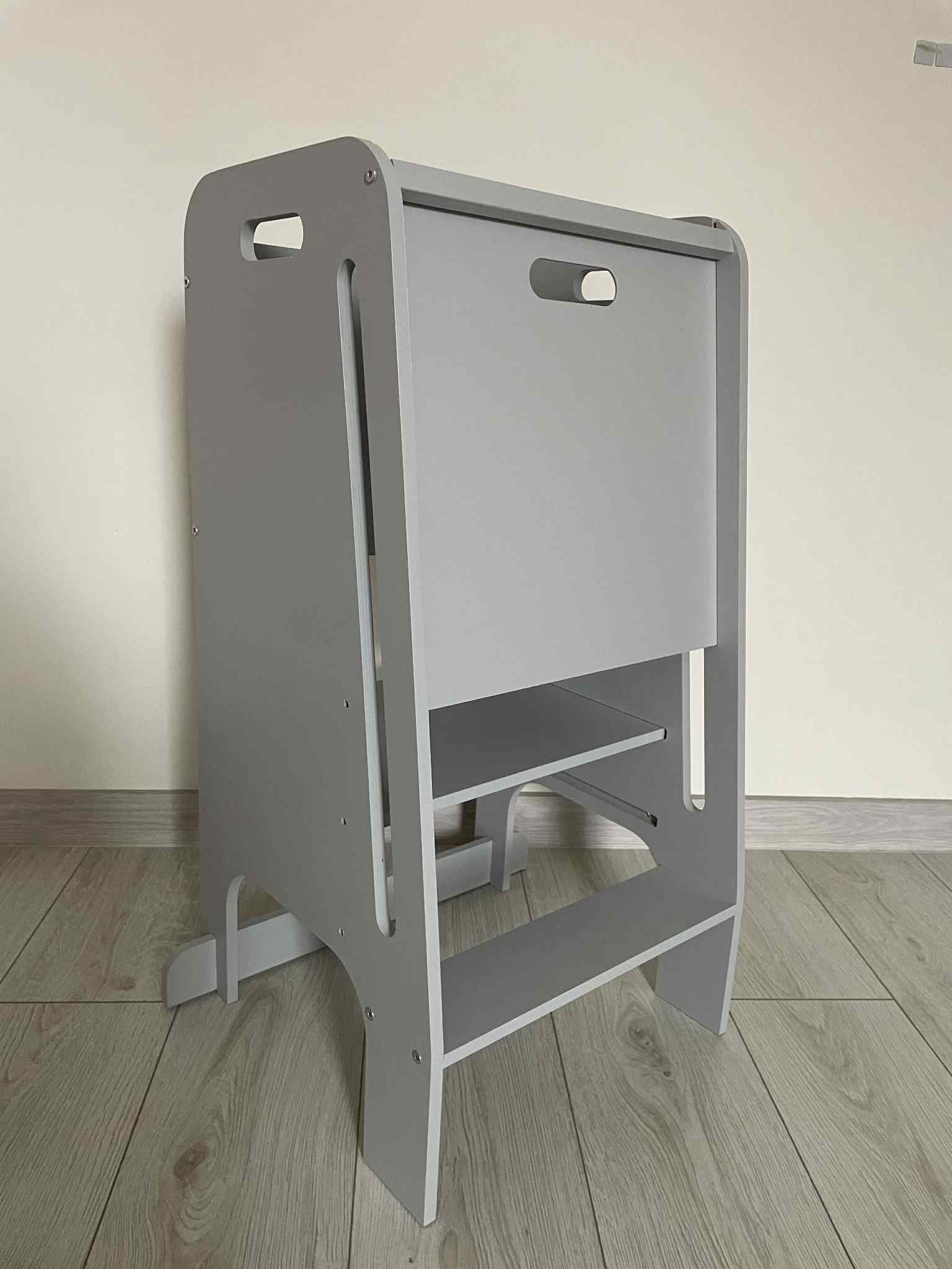 Pomocník do kuchynke Výrobok je vyrobený z prírodnej preglejky (lakovaná). Nábytok je odolný a stabilný. Môže byť použitý pre deti rôznej výšky vďaka trojstupňovému nastaveniu výšky. Vstup uľahčuje 15 cm vysoký schod a bezpečnosť zaisťuje zasúvacia doska. Pre bezpečnosť Vášho dieťaťa sú všetky prvky nábytku starostlivo vyhladené a zaoblené!!! Nábytok je určený na svojpomocnú montáž. Prečo sa oplatí kupovať drevený nábytok??? Pretože vám a vašej rodine budú slúžiť dlhé roky. Sú pevné a dajú sa mnohokrát zložiť a rozložiť. Každú miestnosť urobia teplejšou a svetlejšou. Rozmery: Šírka: 40,5 cm Hĺbka: 40,5 cm Celková výška: 80 cm Výška platformy: 20 cm, 30 cm, 40 cm.