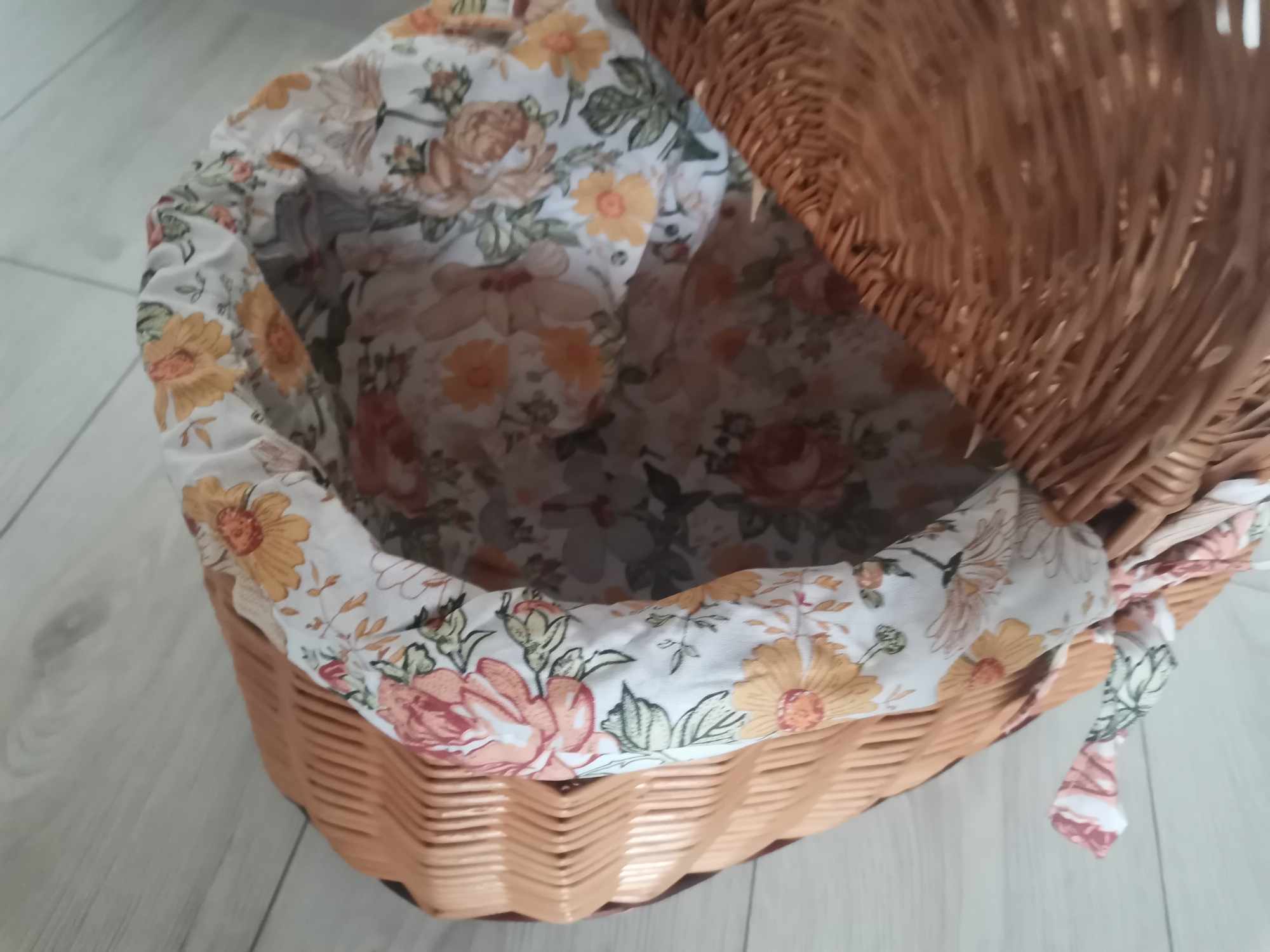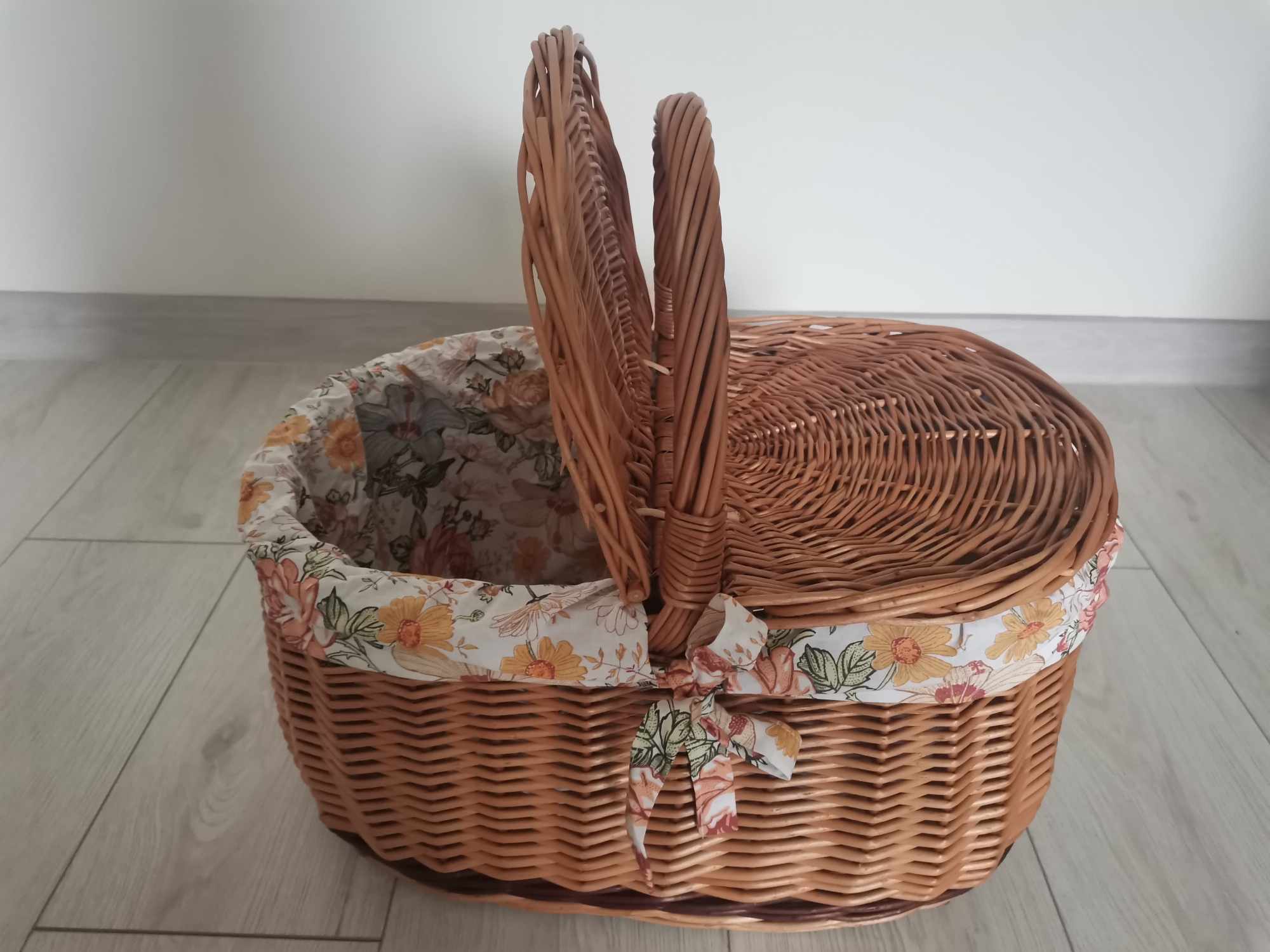 Prútený piknikový kôš - oválny s látkou Košík má praktické otváracie veko z obidvoch stán.poslúži na piknik,nákupy a taktiež na hríby. Látka je ľahko vyberatelná. Materiál: Vŕba Rozmer: Dĺžka: 43 cm Šírka: 30 cm Výška: 25 cm Výška s rúčkou: 42 cm
