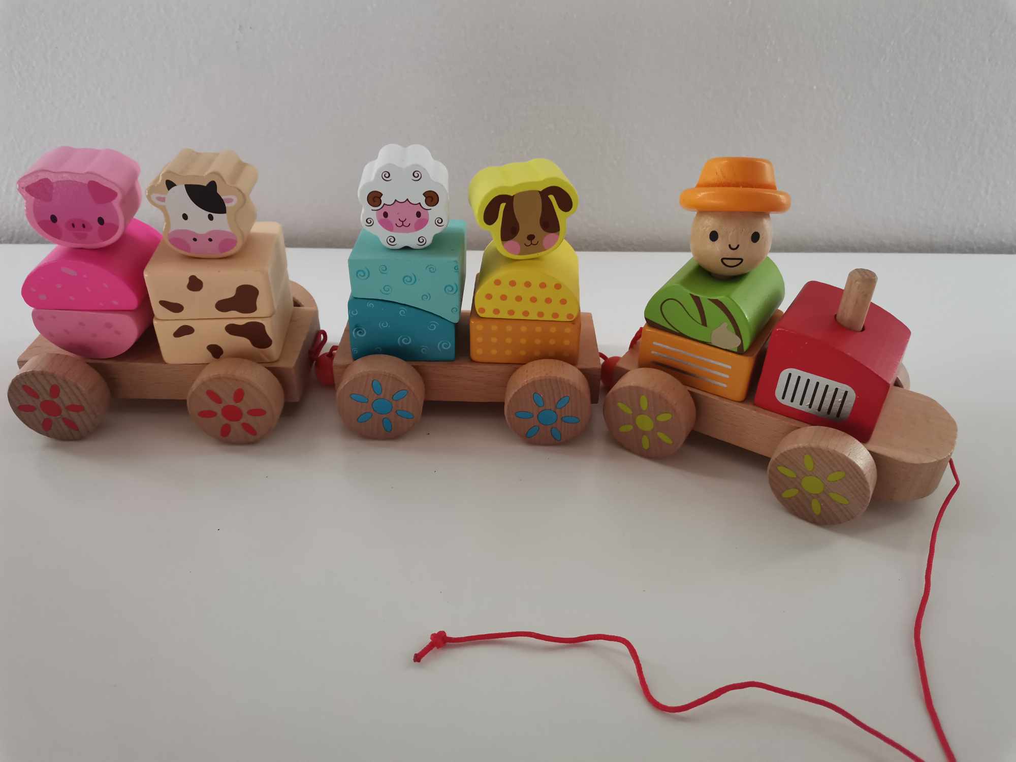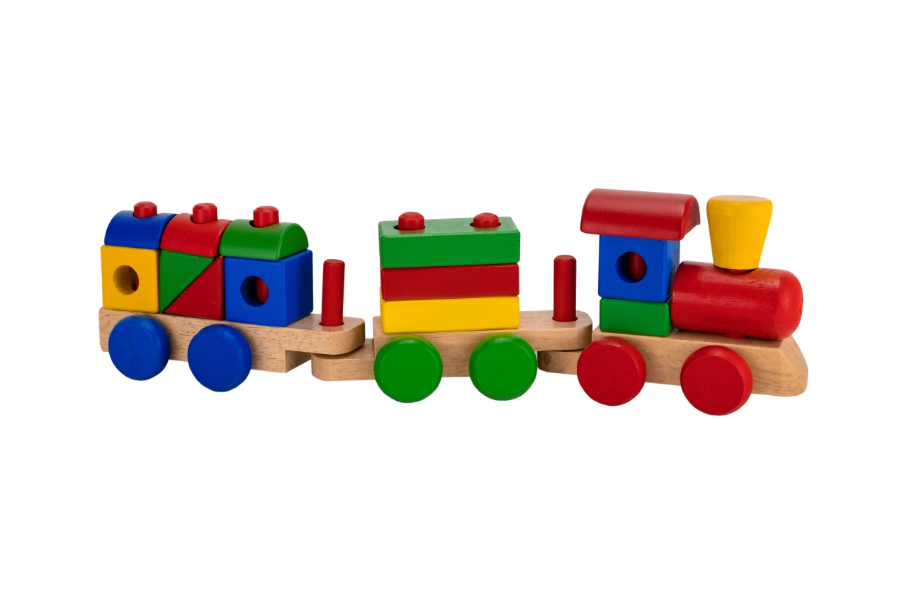 Drevený vláčik , rozvíja logické myslenie – zostavenie príslušných blokov do podoby vláčika. Napomáha rozvoju motorických schopností rúk. Vizuálna a motorická koordinácia pri stavbe vláčika. Rozmer: dĺžka - 38cm ,výška - 12 cm, šírka - 7cm.