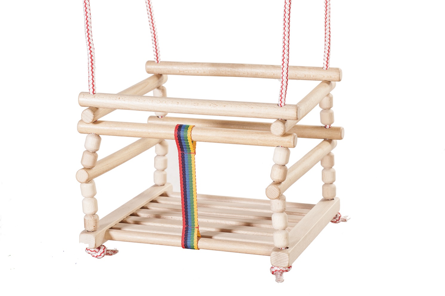 Detská drevená hojdačka Klasická detská závesná hojdačka s ohrádkou a popruhom ktorý bráni vypadnutiu detí z hojdačky počas hojdania . Drevená závasná hojdačka vyrobená z kvalitných materiálov . Táto závesná hojdačka poteší každé dieťa . Materiál: drevo Bukové Rozmer : 33x33x24 cm Dĺžka lana na zavesenie: 140 cm Hrúbka lana : 10 mm
