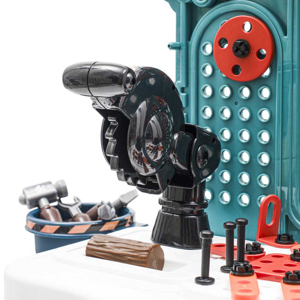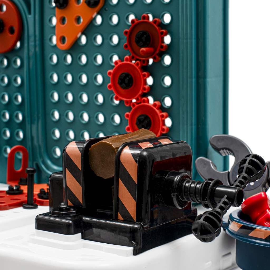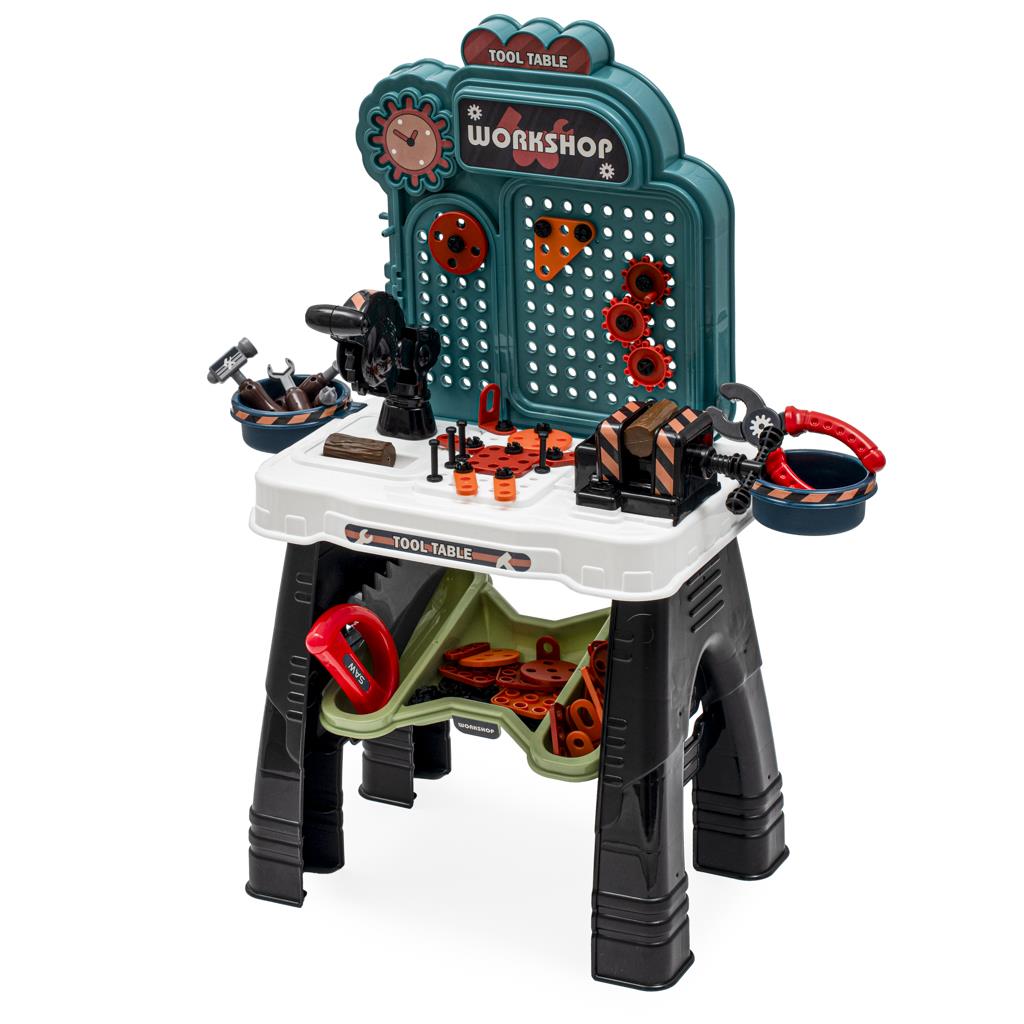 Detská dielňa so 103 nástrojmi je skvelou pomôckou pre malých nadšencov práce s drevom, montáže alebo remesla. Dielňa obsahuje skrutky, pílu, zverák, kliešte a ďalšie. Rozmery: Výška dielne: 66,5 cm Šírka dielne: 55 cm Hĺbka dosky: 26,5 cm Výška po pracovnú dosku: 43 cm Hmotnosť: 2 kg