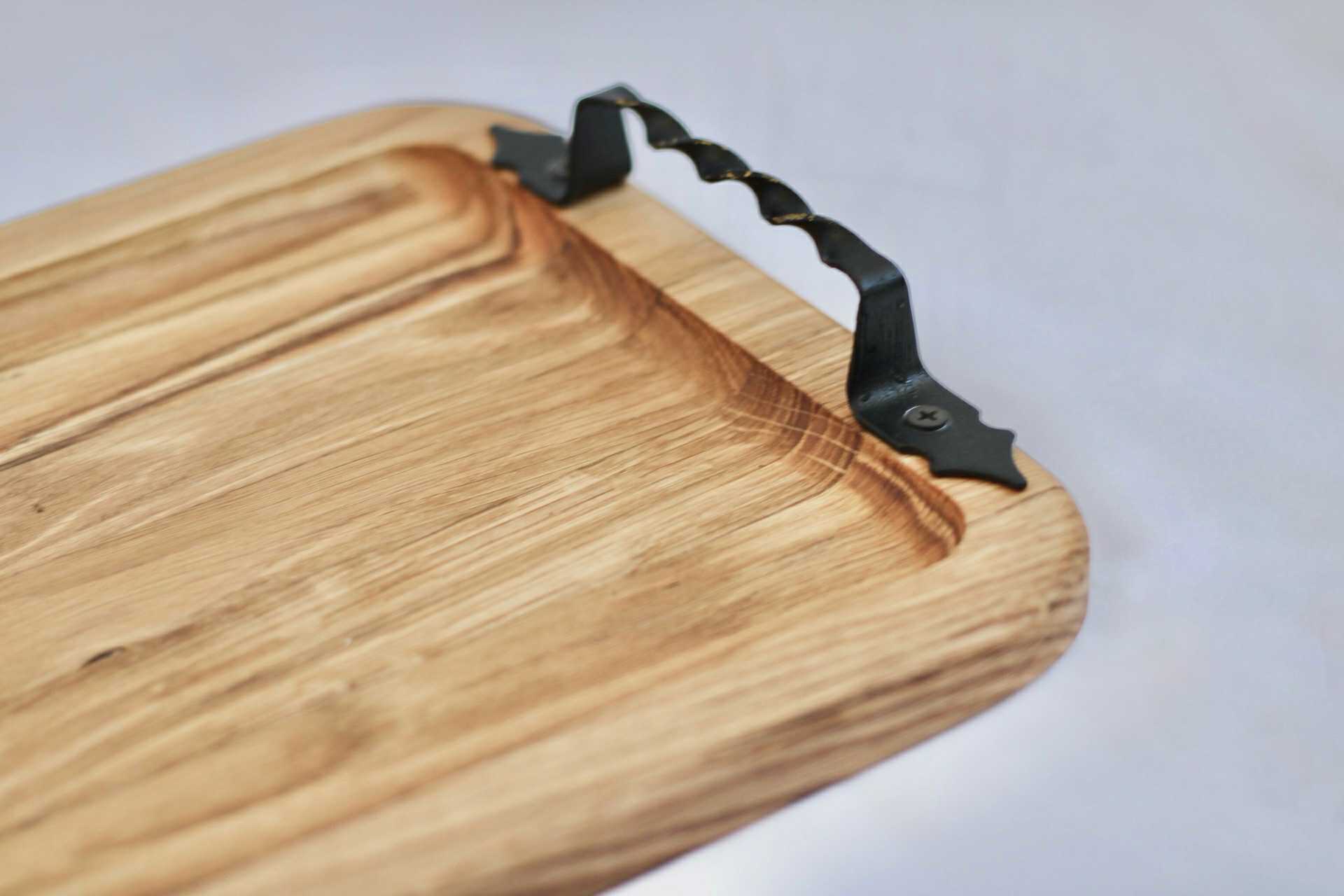 Drevený podnos s kovovými rúčkami z orechového dreva na podávanie rôznych druhov občerstvenia, syrov a údenín. Vďaka kontrastným čiernym kovovým rúčkam získava podnos modrený vzhľad. Rozmer: 45 x 25 cm,výška 2 cm