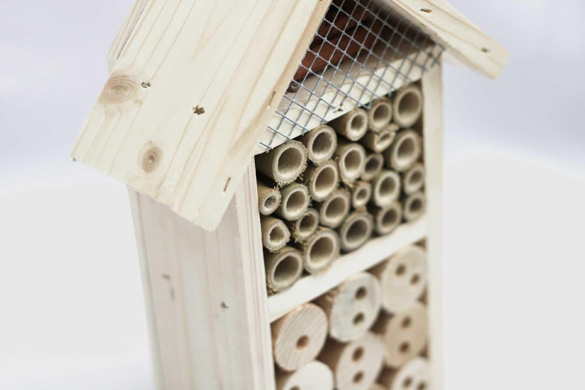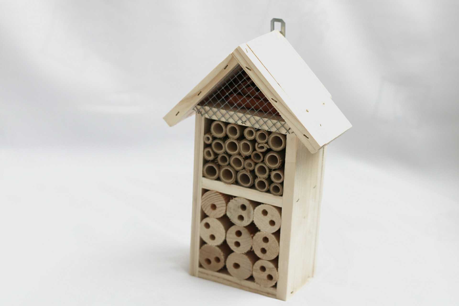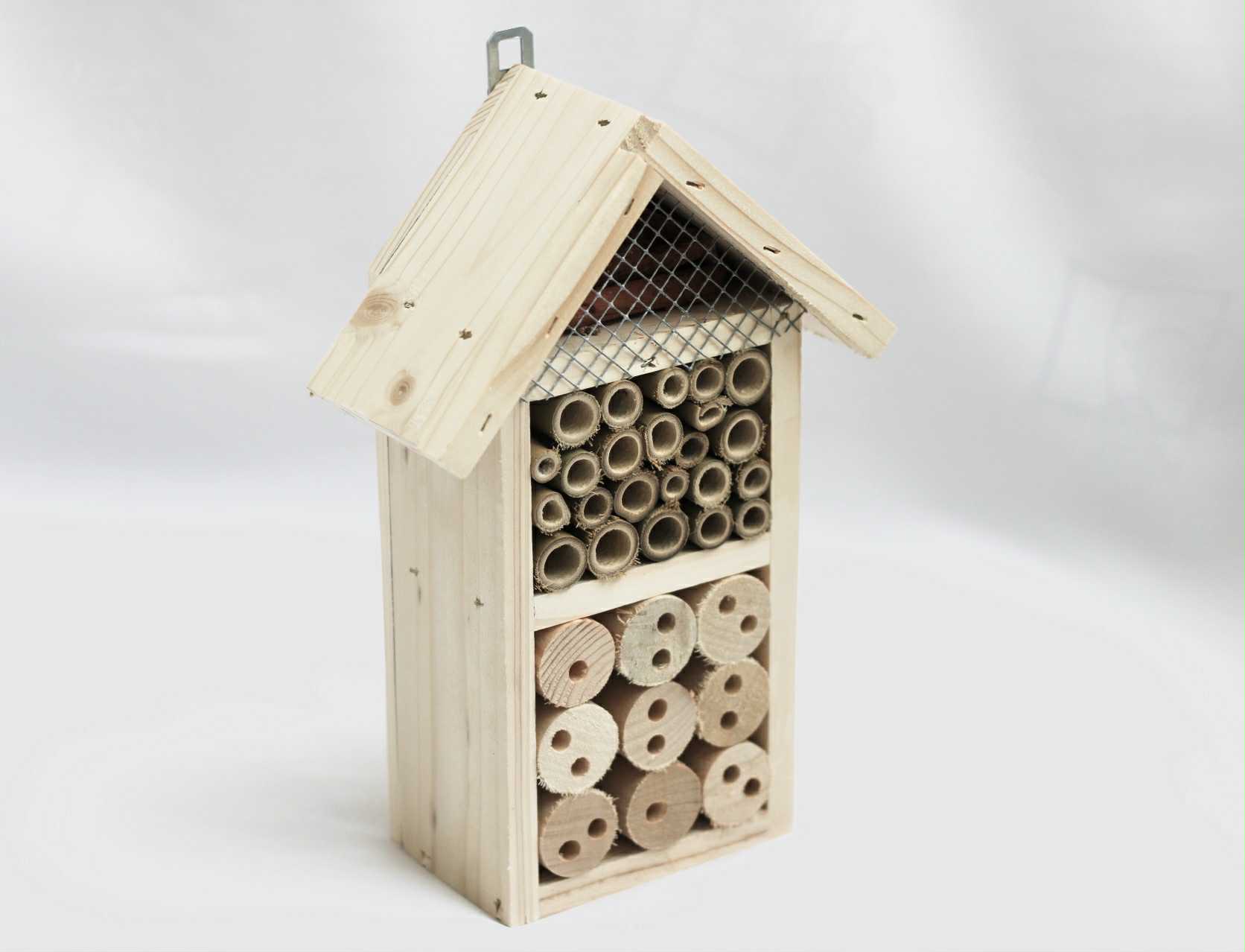 Hmyzí domček / hotel - sa skladá z rôznych oddelení, kde každé má inú výplň a poskytuje tak vhodné možnosti pre úkryt, rozmnožovanie a prezimovanie rôznych druhov užitočného hmyzu. Hmyzí domček je vhodné umiestniť do odľahlého, pokojnejšieho kúta záhrady, na suché, slnečné alebo polotienisté miesto. Pokiaľ možno nasmerujeme vchod na južnú stranu. Domček by mal byť chránený pred dažďom, prudkým vetrom a predátormi. Aby sa do hmyzieho domčeka nasťahovali užitočné druhy hmyzu, je dobré, keď v jeho okolí budú mať dostatok kvitnúcich rastlín, stromov a kríkov. Na zimu ho neupratujte do interiéru. Údržba je veľmi jednoduchá, nemusí sa čistiť. Dutina s úzkou vstupnou štrbinou je vhodným miestom pre úkryt kukiel i dospelých jedincov motýľov. Steblá slamy či trstiny alebo vyvŕtané dierky do tvrdšieho dreva predstavujú ideálne prostredie pre úkryt vajíčok včiel samotárok. Niektoré druhy včiel, ôs alebo napríklad čmeliaky nevytvárajú kolónie. Nežijú v úľoch, ale samostatne, a preto potrebujú hniezdne chodbičky pre úspešné nakladenia a vyliahnutia vajíčok. Ďalšími obyvateľmi hmyzieho domčeka môžu byť lovci škodcov (hlavne vošiek). Medzi tieto bez pochyby patrí lienka sedembodková, zlato očko alebo ucholak. Hľadajú si úkryt napríklad v roztvorených borovicových šiškách, medzi kúskami drievok či kôry alebo v drevitej vlne. Rozmery: 26 x 11 x 7 cm Materiál: drevo, prírodné materiály