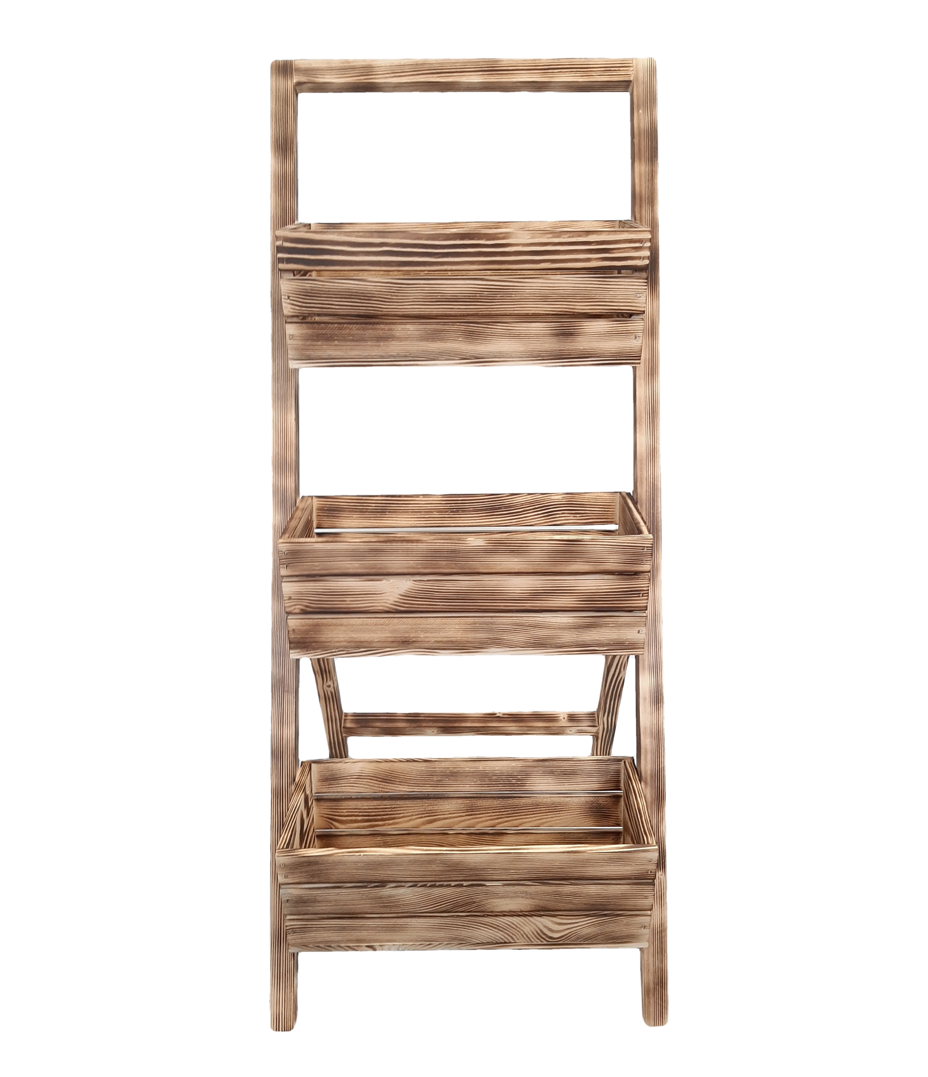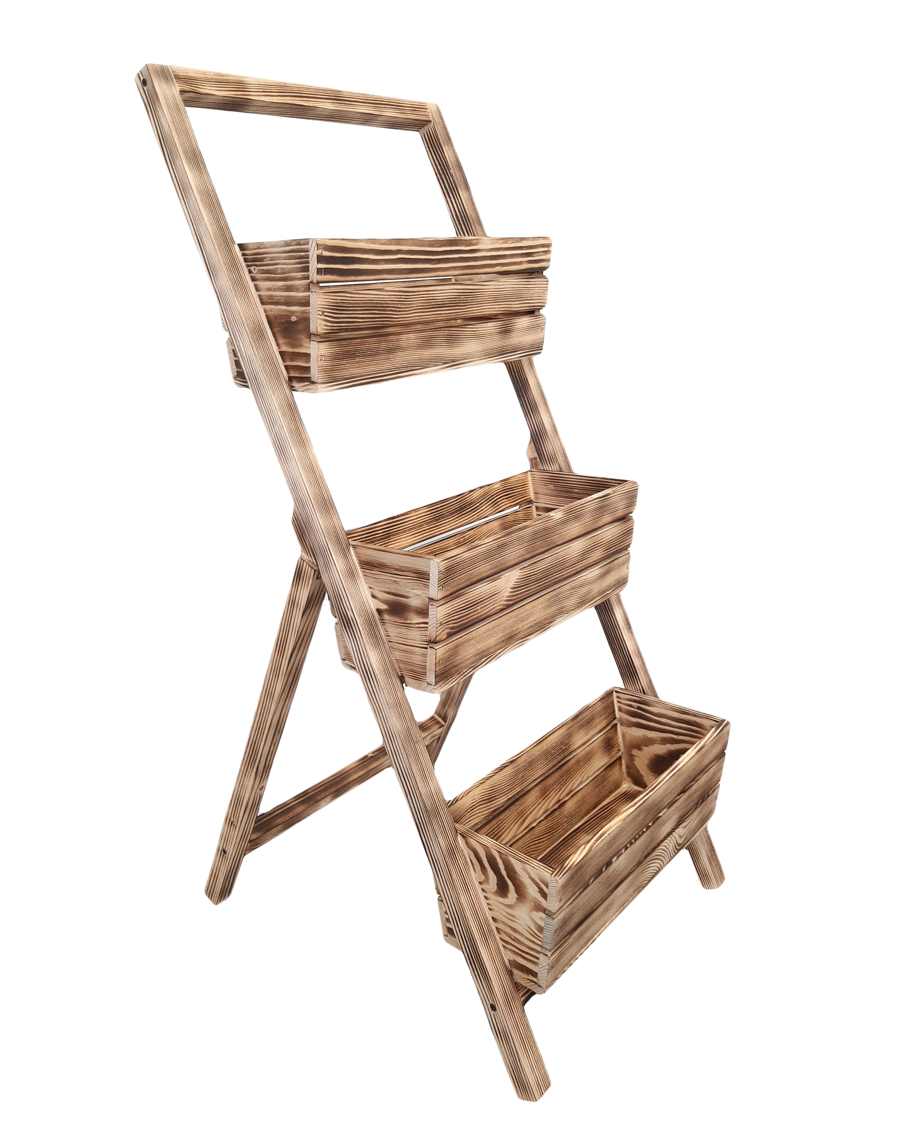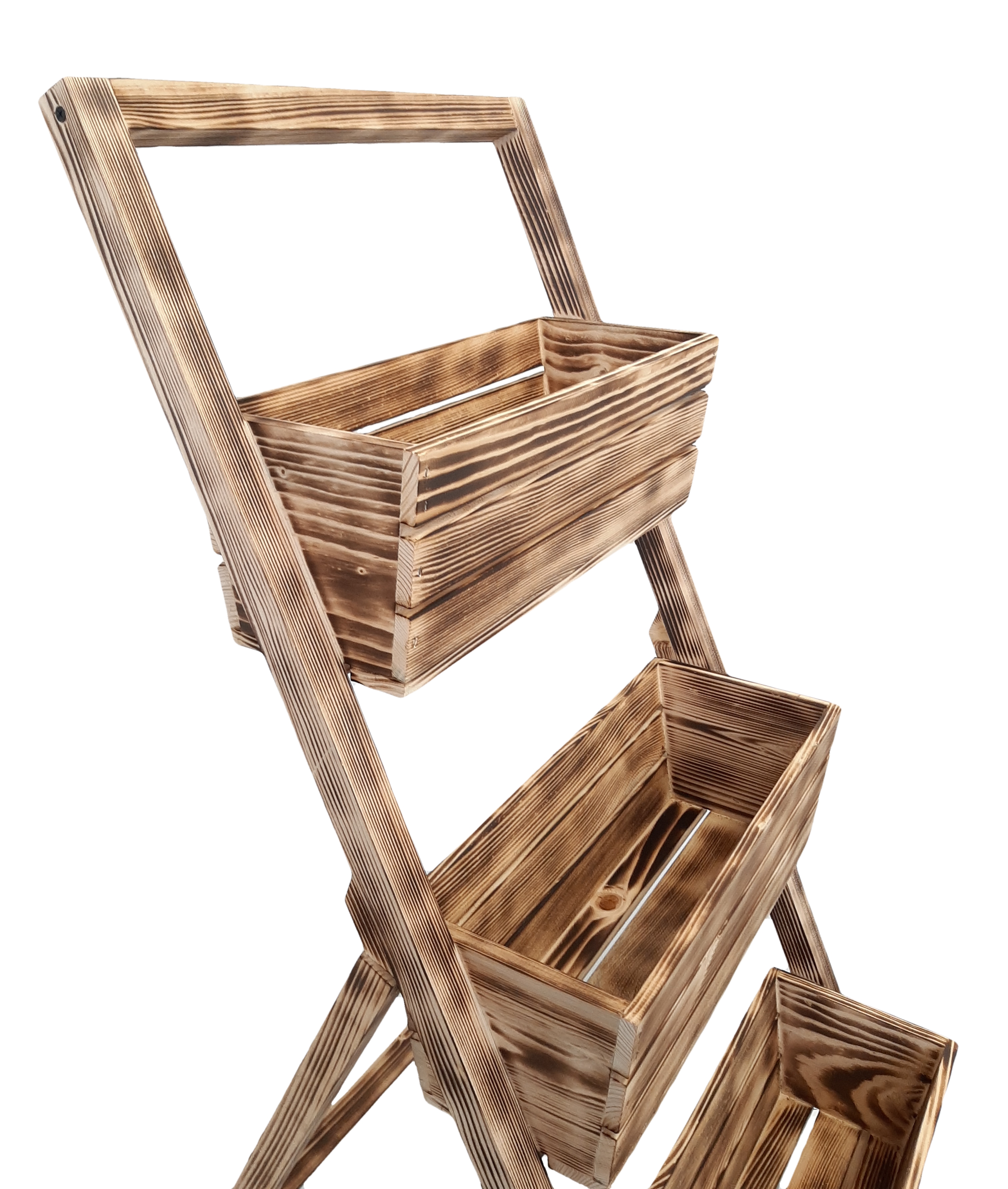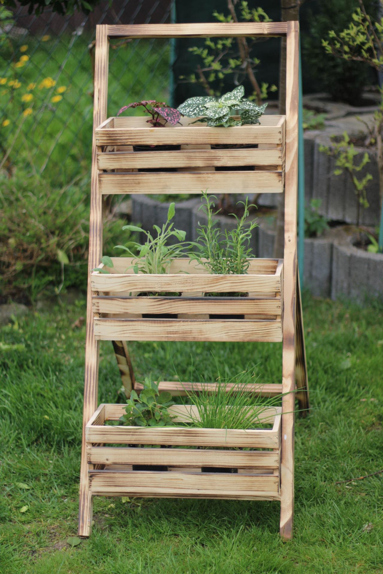 Drevený kvetináč stojaci je celý vyrobený z prírodného dreva, čo zaručuje jeho pevnú štruktúru, stabilitu a odolnosť voči poveternostným podmienkam. Veľký drevený stojan je určený pre pestrofarebné kvitnúce kvety (vrátane závesných), zelené rastliny, čerstvé bylinky a dokonca aj časť vlastnej zeleniny. Ak bývate v rodinnom dome, kvetinový záhon naplnený rastlinami môžete umiestniť pred vchod, na terasu alebo do záhrady a na balkón, ak máte byt v paneláku.