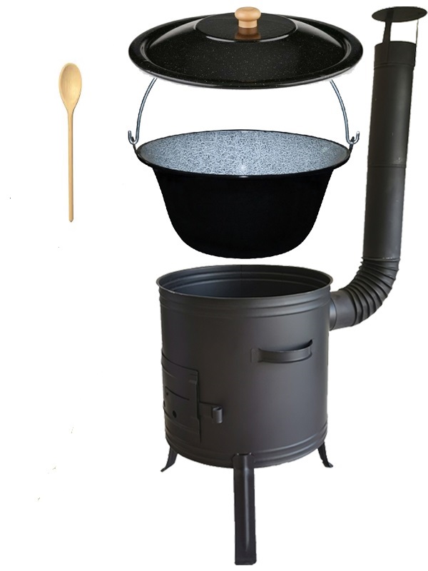 Súprava kotlinová . Kotlina pozostáva z kotliny, kotlíka, pokrievky,varechy.Všetko potrebné pre varenie gulášu či kapustnice Sada obsahuje: Železná kotlina Smaltovaný kotlík na guláš 30l Varecha kotlíková, drevená Čistenie: Čistite vlhkou handričkou. Nepoužívajte abrazívne a drsné čistiace prípravky a pomôcky. Upozornenie: Základná farba na kovovej kotline (paráku), kovovom chrániči plameňa (ohniska) slúži iba ako ochrana pri prenose. Pri prvom používaní kotliny (paráku) a kovovom ohnisku sa farba odstráni (tzv. spáli) Dôležité upozornenie: Kotlina a jej príslušenstvo sa môžu pri používaní rýchlo rozohriať , preto používajte chňapku! Používajte ďaleko od detí! Presvedčte sa, že kotlina stojí na pevnej a vodorovnej ploche! Nepoužívajte v uzatvorených priestranstvách! Nenechajte práve používanú kotlinu bez dozoru! Po používaní zhaste plemene! Čistenie: Tekutým čistiacim prostriedkom a teplou vodou. Následne utrite do sucha. Vyhýbajte sa predmetom a čistiacim prostriedkom, ktoré zanechávajú škrabance!