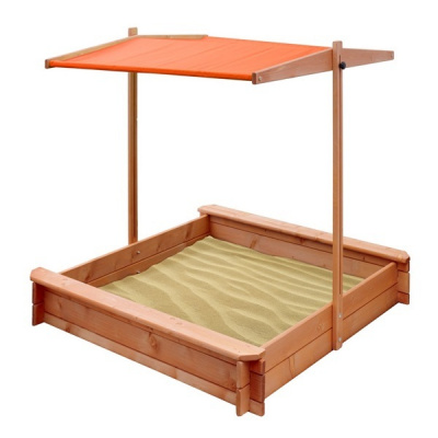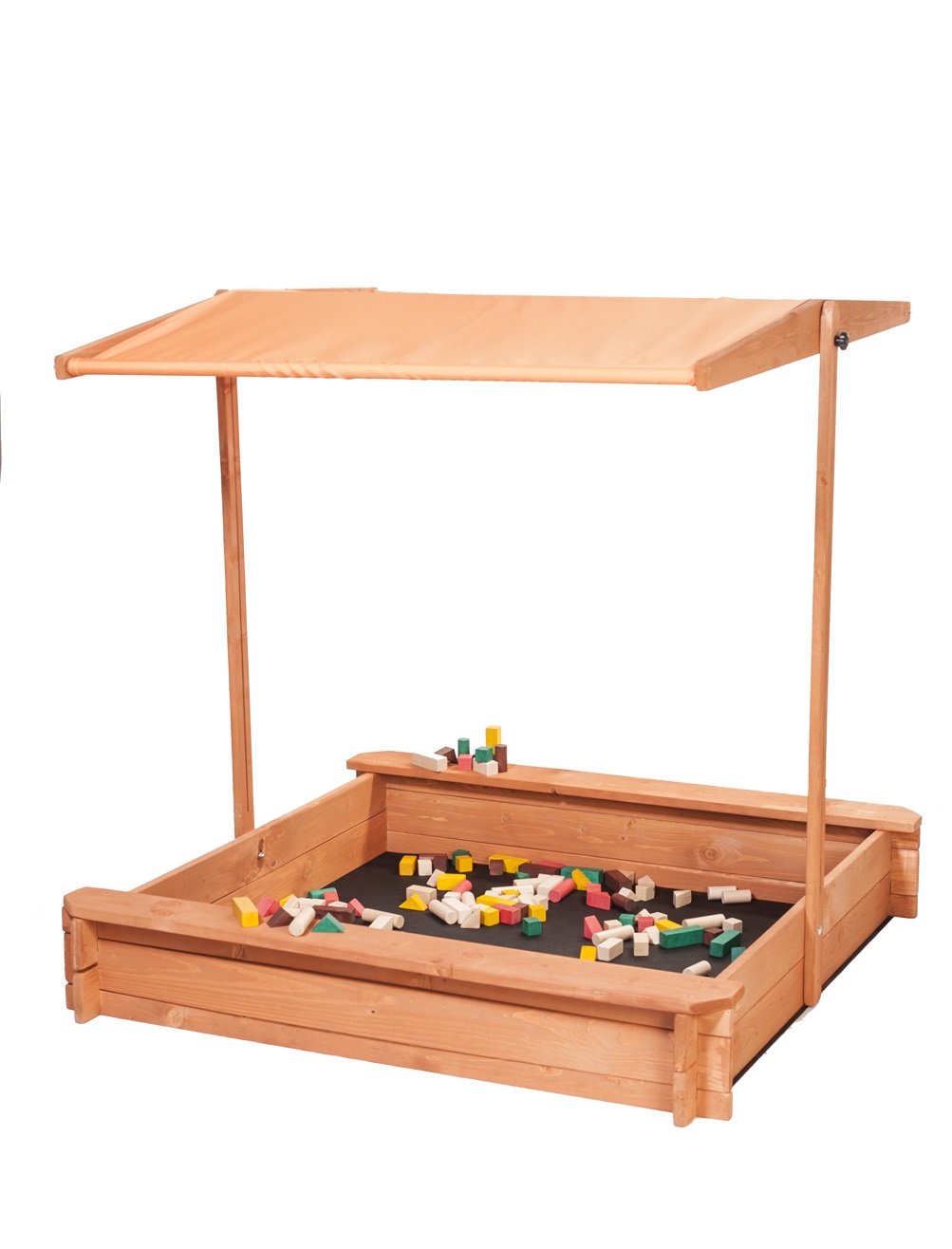 Drevené pieskovisko je vybavené plátennou strieškou, ktorá sa dá nakloniť podľa slnka, a keď sa deti dohrajú, môžete ňou pieskovisko jednoducho zakryť a ochrániť ho pred dažďom alebo zvieratami.