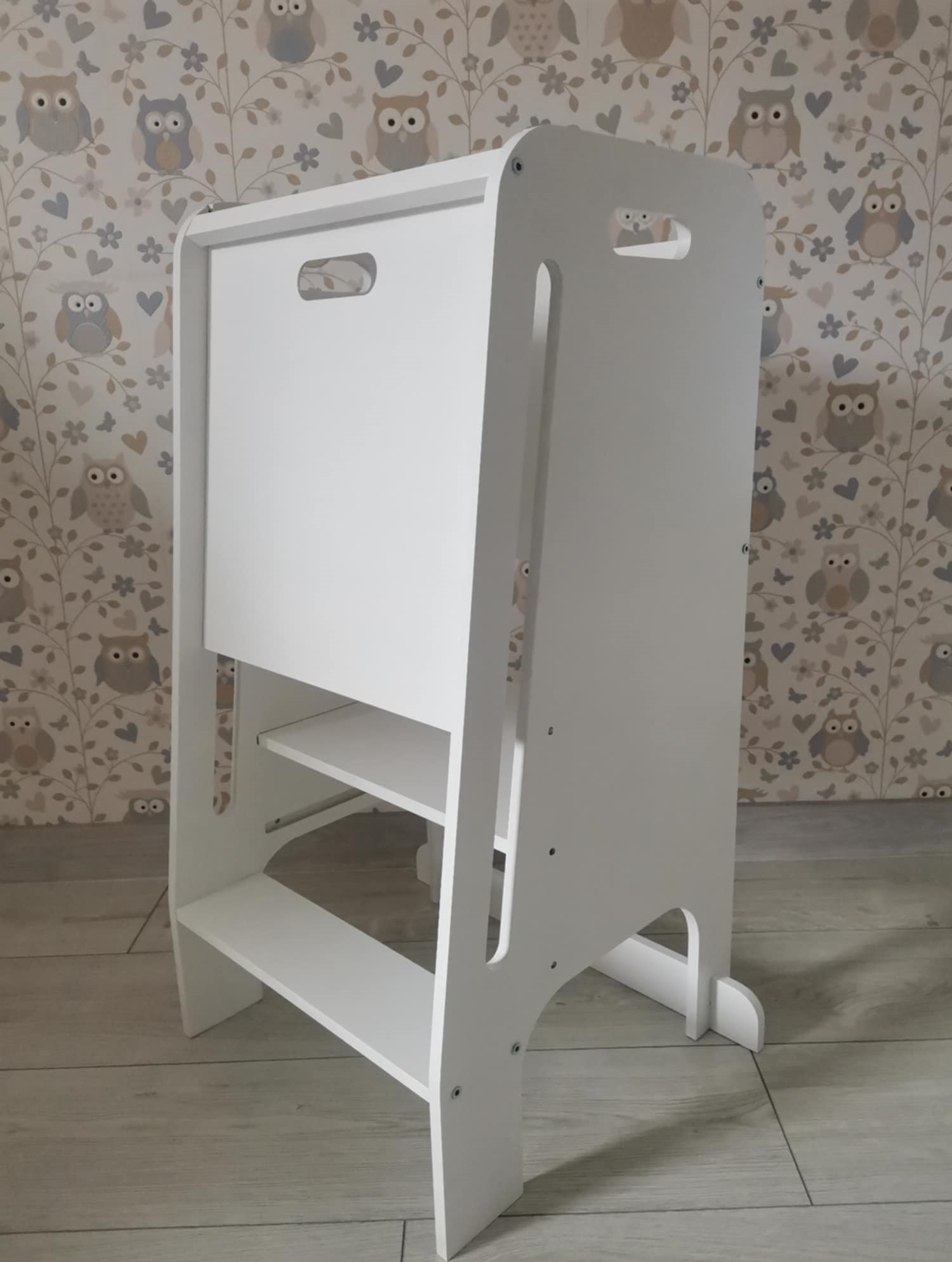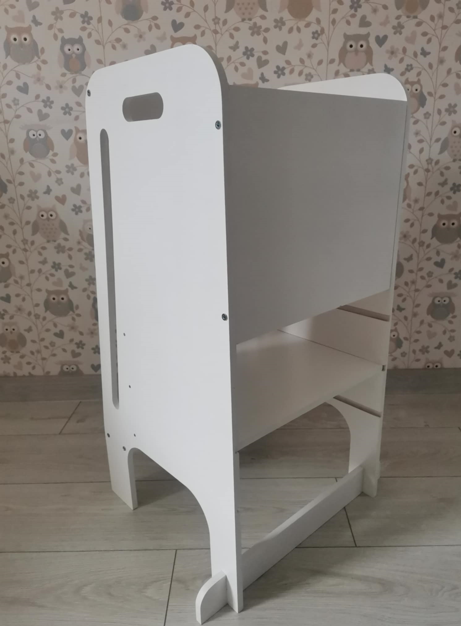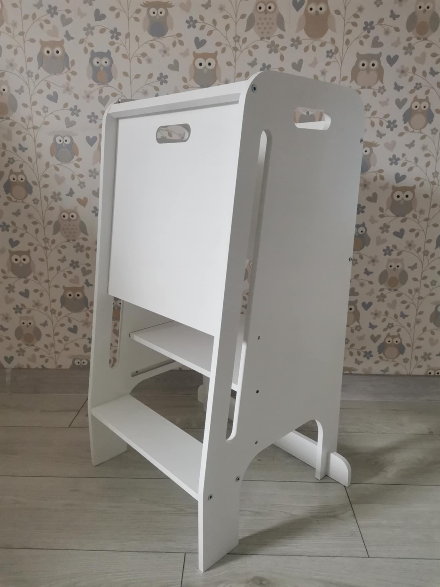 Pomocník do kuchynke Výrobok je vyrobený z prírodnej preglejky (lakovaná). Nábytok je odolný a stabilný. Môže byť použitý pre deti rôznej výšky vďaka trojstupňovému nastaveniu výšky. Vstup uľahčuje 15 cm vysoký schod a bezpečnosť zaisťuje zasúvacia doska. Pre bezpečnosť Vášho dieťaťa sú všetky prvky nábytku starostlivo vyhladené a zaoblené!!! Nábytok je určený na svojpomocnú montáž. Prečo sa oplatí kupovať drevený nábytok??? Pretože vám a vašej rodine budú slúžiť dlhé roky. Sú pevné a dajú sa mnohokrát zložiť a rozložiť. Každú miestnosť urobia teplejšou a svetlejšou.Rozmery: Šírka: 40,5 cm Hĺbka: 40,5 cm Celková výška: 80 cm Výška platformy: 20 cm, 30 cm, 40 cm.