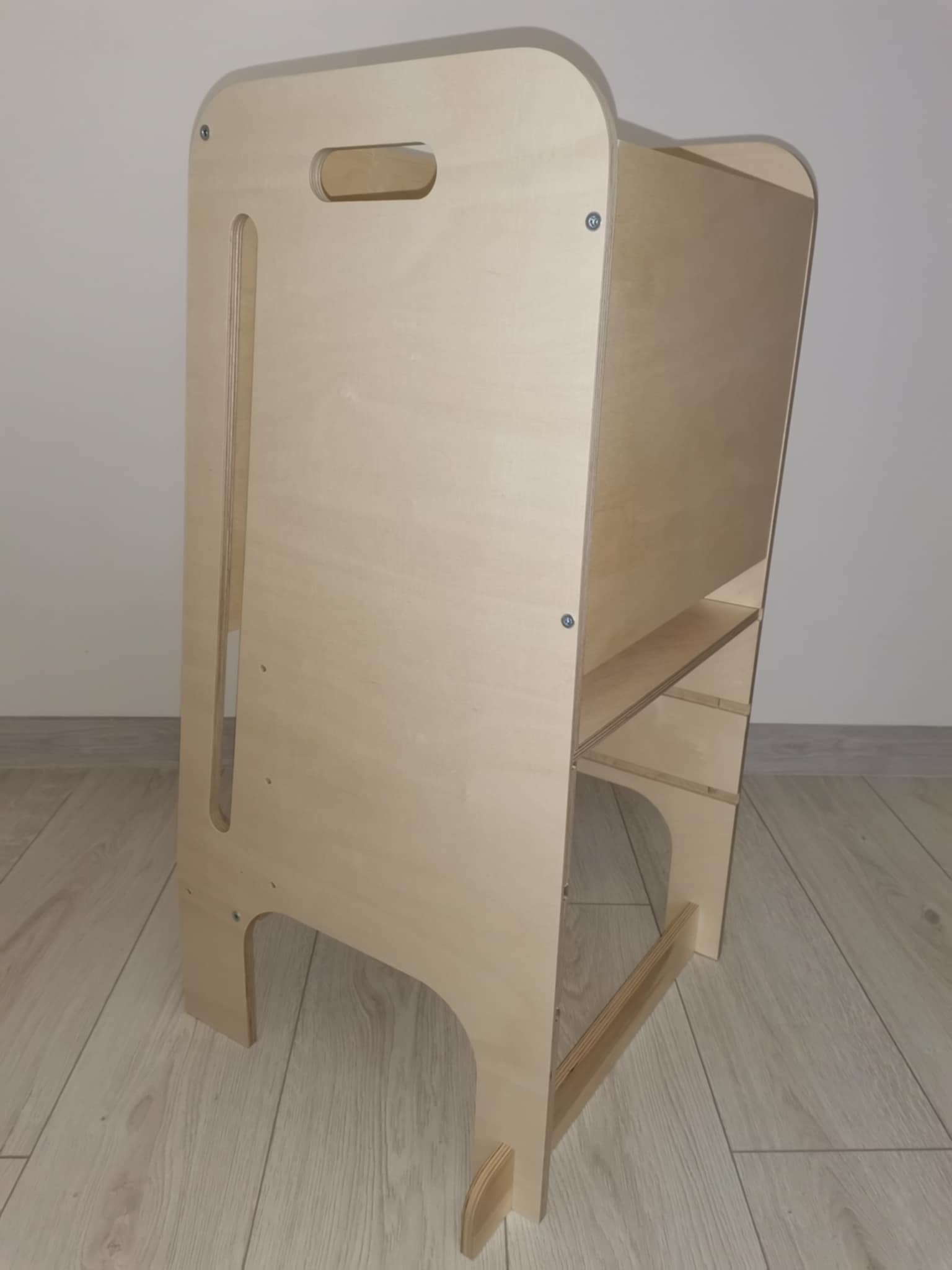 Pomocník do kuchynke Výrobok je vyrobený z prírodnej preglejky (lakovaná). Nábytok je odolný a stabilný. Môže byť použitý pre deti rôznej výšky vďaka trojstupňovému nastaveniu výšky. Vstup uľahčuje 15 cm vysoký schod a bezpečnosť zaisťuje zasúvacia doska. Pre bezpečnosť Vášho dieťaťa sú všetky prvky nábytku starostlivo vyhladené a zaoblené!!! Nábytok je určený na svojpomocnú montáž. Prečo sa oplatí kupovať drevený nábytok??? Pretože vám a vašej rodine budú slúžiť dlhé roky. Sú pevné a dajú sa mnohokrát zložiť a rozložiť. Každú miestnosť urobia teplejšou a svetlejšou.Lakovaný ekologickým lakom. Rozmery: Šírka: 40,5 cm Hĺbka: 40,5 cm Celková výška: 80 cm Výška platformy: 20 cm, 30 cm, 40 cm.